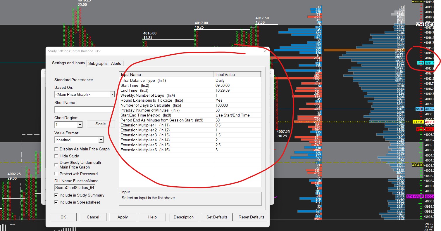 I am using the intial balance study on a p&nf , a TPO, and a Footprint chart and each chart is giving the wrong data...I have the charts all set to EST NY and set the ib time to 9:30-10:29:59..attached please find a screen shot of the P&F chart and the settings.