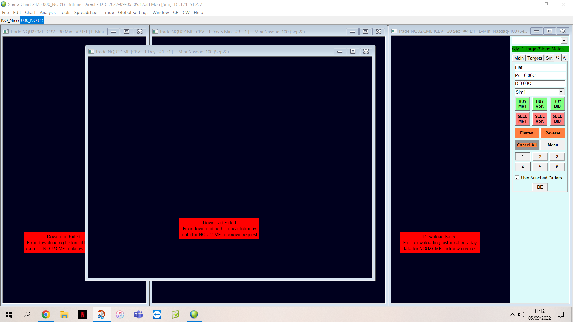 You are using Rithmic. This is a Rithmic market data issue. We cannot help with Rithmic market data issues. We strongly recommend using the Denali Exchange Data Feed. Refer to: Rithmic Trading Platform Service: Rithmic Support Policy Let us know if you would like help setting up the data feed. Sierra Chart Support - Engineering Level Your definitive source for support. Other responses are from users. Try to keep your questions brief and to the point. Be aware of support policy: https://www.sierrachart.com/index.php?l=PostingInformation.php#GeneralInformation For the most reliable, advanced, and zero cost futures order routing, use the Teton service: Sierra Chart Teton Futures Order Routing Date Time Of Last Edit: 2022-09-05 14:17:21