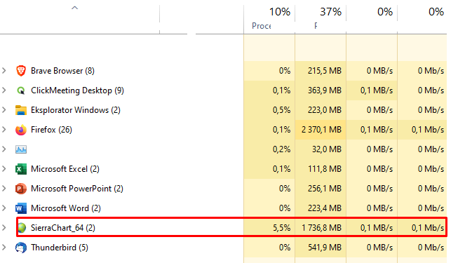 Hi, I am struggling with this issue for a long time. Maybe you can tell me some work around so sierra work faster. My current sierra setup includes 5-6 chartbooks inside those chartbooks i have around 5 charts + 3 spredsheets.Those charts are connected with each other. Amount of data for any charts is limited as much as it can be so charts have 1-2 max days loaded data + one 4hour chart has 365 days. I use 6 monitors as well. My computer parameters are: RAM 32GB RYZEN 7 2700X HARD DRIVE SSD M2 500GB Graphic card Geforce GT 730 Win11 When all charts are opened memory ussage is around 1,7GB (attaching screen) and whole computer start to lagging - responding with slow motion, it takes long time to do anything on computer, including trading. With OPEN GL active platform works a little bit faster, but it stil slow. Issue was with older sierra version as well like with the newest one. What can i do? i can provide video if that would help. |