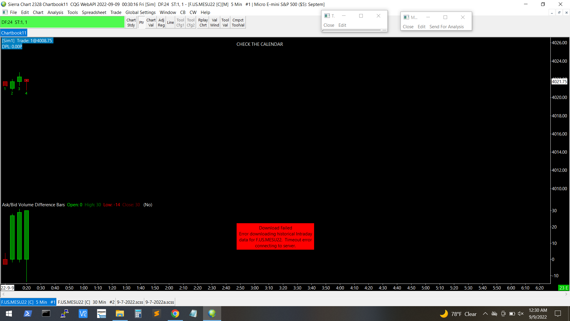 We need to see your Message Log by following these instructions: Follow the instructions here to clear the Message Log: Message Log: Clearing the Message Log Open a chart for the symbol you have an issue with. Tell us that symbol of the chart. Disconnect from the data feed with "File >> Disconnect". Connect to the data feed with "File >> Connect to Data Feed". After the connection and after about 10 seconds, provide a copy of the Message Log following these instructions: Support Board Posting Information: How to Post Your Message Log (Required In Some Cases) We will then determine what the problem is. For the most reliable, advanced, and zero cost futures order routing, use the Teton service: Sierra Chart Teton Futures Order Routing |
