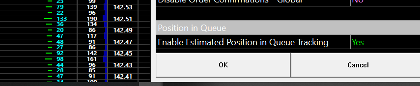 Hi folks i've readed the documentation on how to enable Position in Queue Tracking --> Global Trade Settings Windows: Enable Estimated Position in Queue Tracking (Global Settings >> Chart Trade Settings >> General >> Position in Queue) In attachment you will find the screenshot. Both parameters are in YES. general -> Enable estimated position in queue Tracking working Orders -> Estimated Position (Q) As you can see on Queue screenshot i don't see Estimated Position in Queue INFO: version 2434 64-bit revision 43540 thanks in advance for your help |