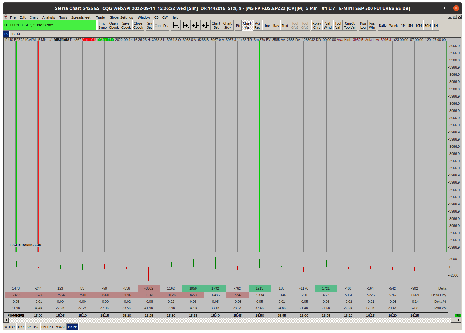 I am having some issues with my footprint chart on E-MINI SP500. If you take a look at the attachment the footprint chart doesnt load properly. I only see one price on the price scale and that is the current price, this will fluctuate when market is active and stay still when market is closed. I cannot see any other prices and hence the footprint. I have tried to rescale the price range but it compresses everything into a single line (Check attachment). I am using this same footprint chart template for EURUSD and GBPUSD and it works fine. How can I solve this? |