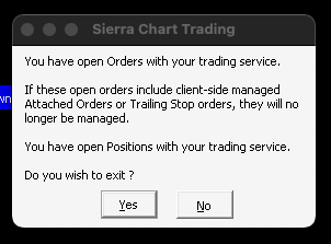 It does not really make sense that the data feed would just simply stop. That should just simply not happen at all. As long as Sierra Chart is connected to the data feed (File >> Connect to Data Feed). Refer to help topic 3: Intraday Chart or Chart Bars Not Updating | Blank Intraday Chart | "Currently no data to display" message for Intraday Chart Refer to this particular subsection to see if you are receiving data to that instance: Intraday Chart or Chart Bars Not Updating | Blank Intraday Chart | "Currently no data to display" message for Intraday Chart: 3.4 - Not Receiving Real-Time Data From Data Feed It also looks like you are not using Windows. So the problem may actually be due to that. Sierra Chart Support - Engineering Level Your definitive source for support. Other responses are from users. Try to keep your questions brief and to the point. Be aware of support policy: https://www.sierrachart.com/index.php?l=PostingInformation.php#GeneralInformation For the most reliable, advanced, and zero cost futures order routing, use the Teton service: Sierra Chart Teton Futures Order Routing Date Time Of Last Edit: 2022-09-19 11:17:05