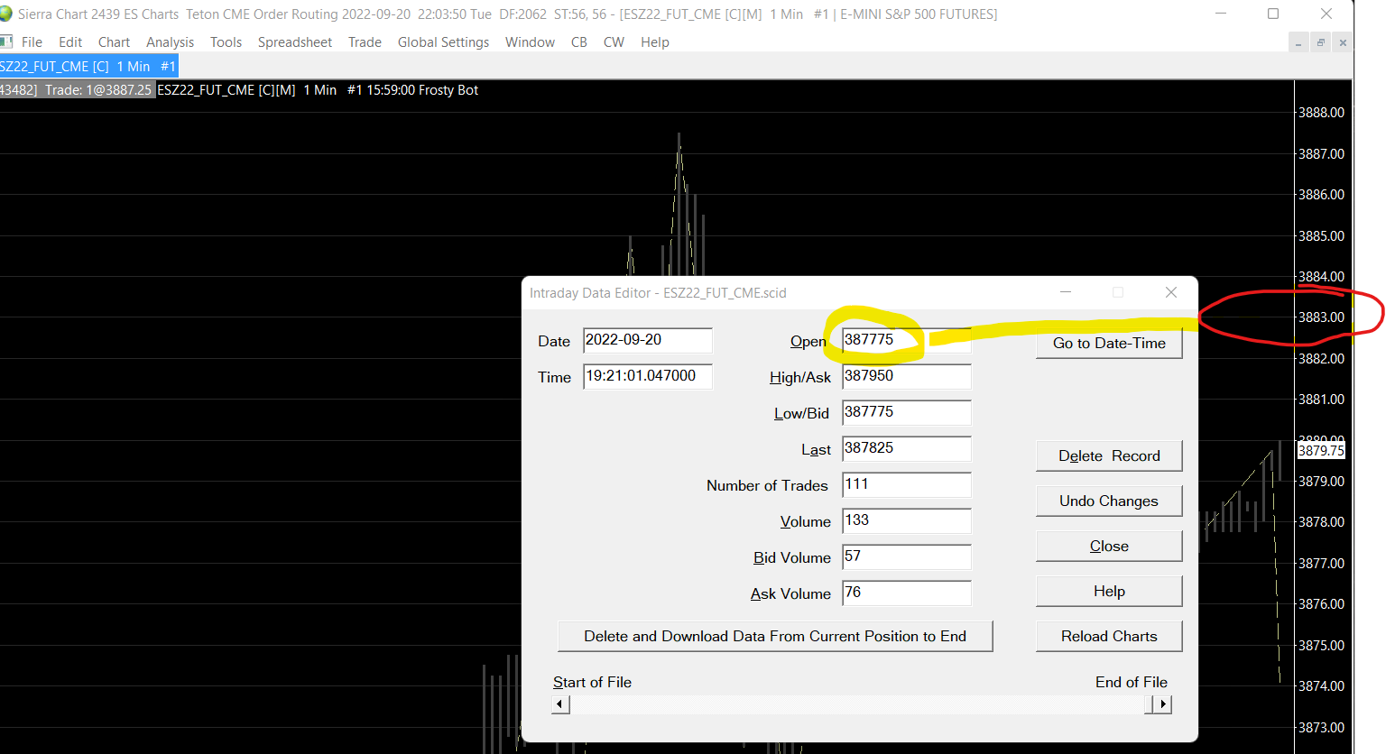 Intraday data editor bad prices