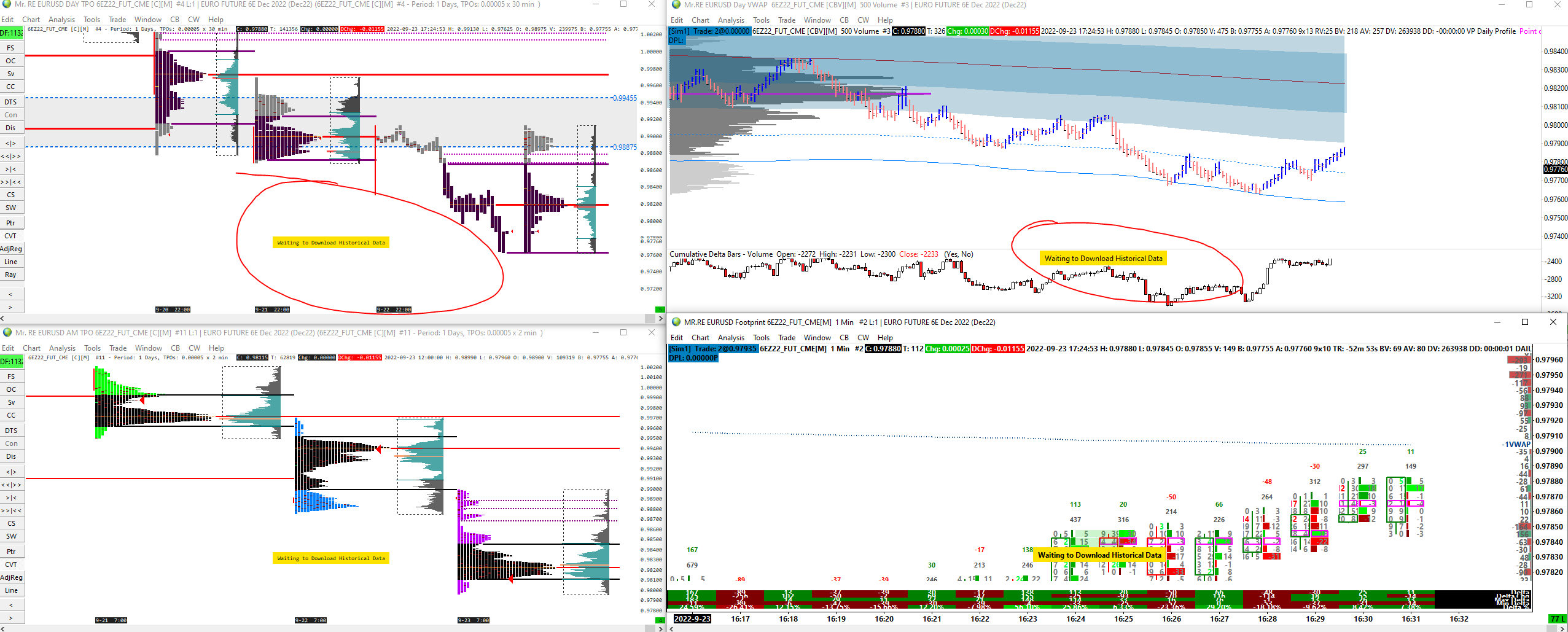 That is a normal message that indicates that the system is downloading data. We notice that the charts you have are Continuous Futures Charts, so depending on how many days of data you have set to download, it could take some time to get all the data. If you think there is an issue, then close the chartbook and start a new one with just one chart for this symbol and load just a few days for a non-continuous chart. See if you get the data properly. If so, then it is just about waiting long enough to get all the data for those charts. For the most reliable, advanced, and zero cost futures order routing, use the Teton service: Sierra Chart Teton Futures Order Routing |