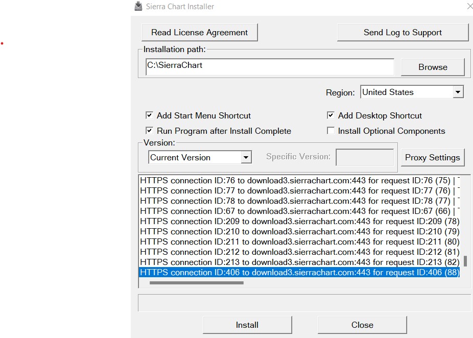 Try using the ZIP installer: Software Download: Sierra Chart Zip Installer And provide us the installer log directly here if you still have an issue. Instructions: Software Download: Providing Installer Log to Support Sierra Chart Support - Engineering Level Your definitive source for support. Other responses are from users. Try to keep your questions brief and to the point. Be aware of support policy: https://www.sierrachart.com/index.php?l=PostingInformation.php#GeneralInformation For the most reliable, advanced, and zero cost futures order routing, use the Teton service: Sierra Chart Teton Futures Order Routing |