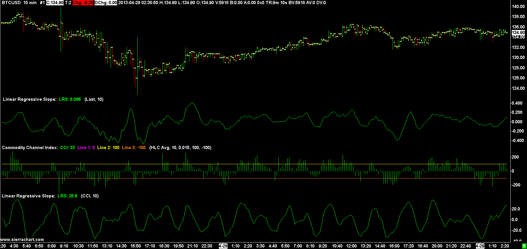 But look at the scale, at the values of the bottom LRS. On the picture you posted, see the scale of the bottom LRS - I see there are values 20, 0 and -20 ...but that doesn't make sense, I'm expecting a scale with values similar to the first LRS on the picture (in which the scale is from -0.4 to 0.4). Linear Regressive Slope: LRS: 26.6 (CCI, 10) ---> The actual value of the last LRS on the picture is 26.6 ...that is too much. LRS with such value represent a dramatically steep slope. Such steepness would exist only if there were great jumps in CCI values, but there are none. Date Time Of Last Edit: 2013-04-30 06:43:37