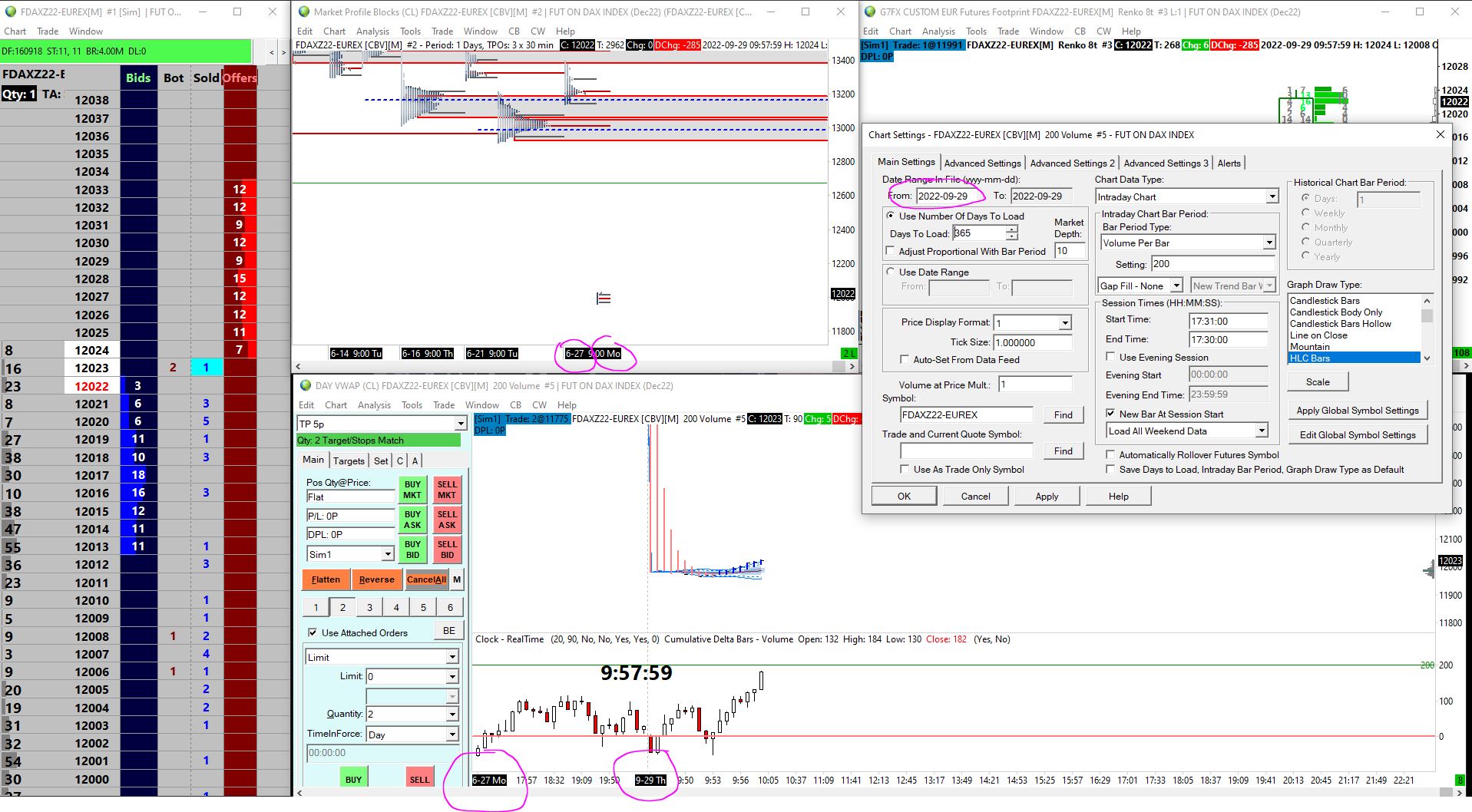 Hello, after a long break I'm starting again using Sierra Chart. I did the rollover of my symbol as i needed it. I'm receiving well the real time data, not any problem with that. My only problem is that i don't have the history between today (29th of september) and the 27th of june. When i go in chart settings, i can't change the Date Range. Thank you. Anthony |