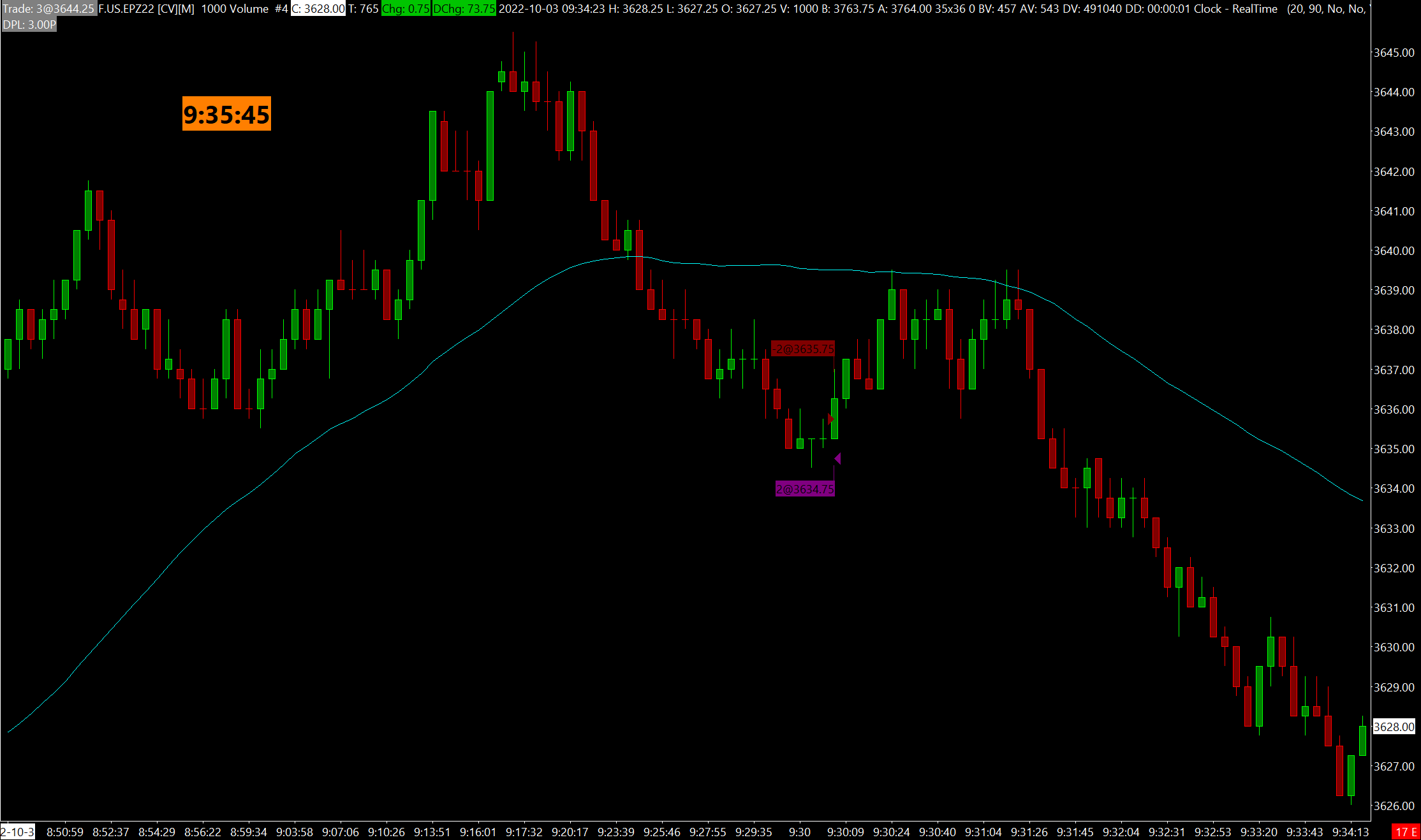 Hello. As seen in the image below, it appears that I had an order fill on the wick of a candle that isn't there. It is my experience that when there is high activity on tick/volume charts the price will move faster than the bars will update to reflect the actual price movement within the set tick/volume interval. The only reasonable explanation for this is the order fills actually took place on one of the previous candles and due to the volatility of open the order fill data was shown slightly later (3-4 sec. later). I would like Sierra Chart Support to let me know if this is actually what I am experiencing or if it is because of some other phenomenon. To clarify: I don't believe this has any impact on real-time trading. Only looking at historical order fills, this could be the source of slight confusion. https://www.sierrachart.com/image.php?Image=1664890545267.png Sincerely, Jack47 |