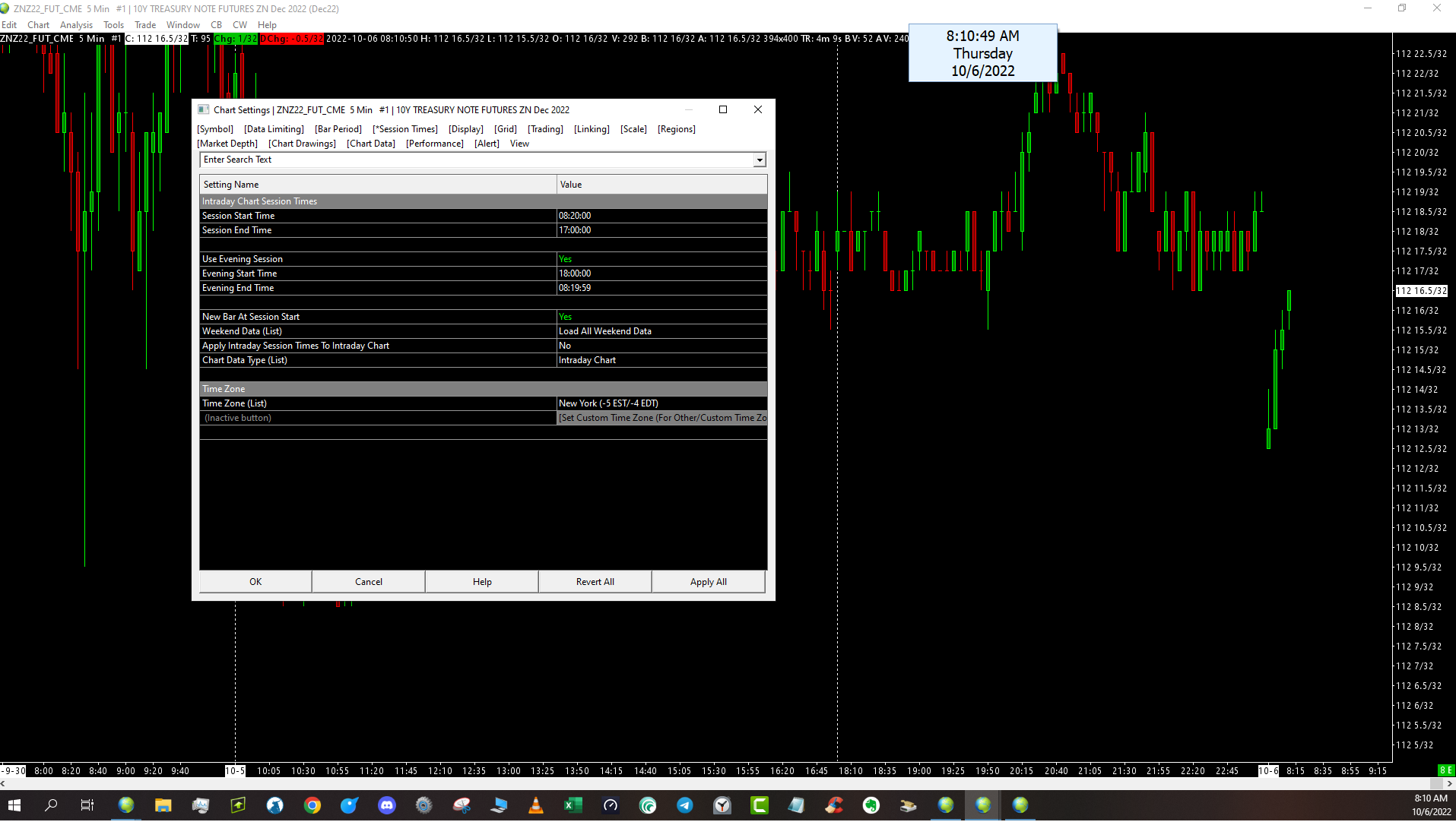 I am attaching the following chart with these question 1) I dont understand why my session lines/times are not showing at 8:20 am est start time as i have it in the session times as the start time. 2) I also dont know why i am missing the overnight information after midnight until the time i loaded my charts. i reloaded/recalculated the charts but same thing persists Thank you |