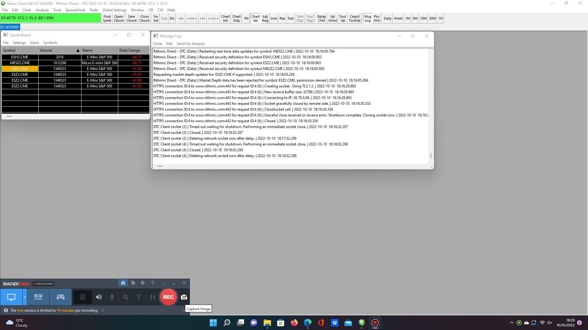 hi there on friday i stopped receiving data and i received an email from rhithmic stating i had used my weekly data allowance and they said i will start receiving data sunday evening. but i am still not getting any data. ive emailed them and they have assured me that everything on there end is working and have asked me to reach out to you guys sierra chart. |