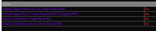 hello, the "include p/l in chart/trade DOM" is no longer hiding my p/l on my trade window. am i missing something? im not sure why my global settings reset that one setting thanks so much for any info! |