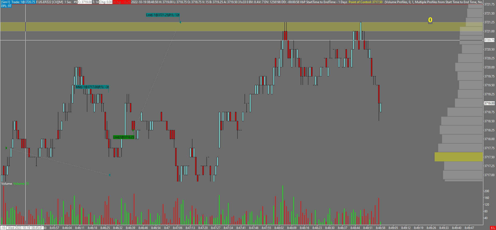 I'm paying for CQG data so it shouldn't be delayed. So what else could cause the markers to show where no price traded on the chart? The limit sell price is 3721.25 at 8:47:07 but the candlestick didn't print that price until 8:48:05 in the attached chart. |