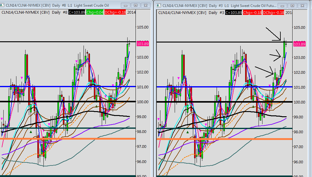 We see nothing wrong. We have opened the chart for that symbol and the quotes are definitely good. This is what we would expect. Does it really make sense that inaccurate data is being provided? No it does not. You can find the settlements here: http://www.cmegroup.com/trading/energy/crude-oil/light-sweet-crude_quotes_settlements_futures.html#tradeDate=05/20/2014 Also when examining the settlement prices in a Historical Daily chart, disable the Continuous Futures Contract feature so you are certain as to what particular contract month you are looking at. Or enable Chart >>Show Rollover Dates. Sierra Chart Support - Engineering Level Your definitive source for support. Other responses are from users. Try to keep your questions brief and to the point. Be aware of support policy: https://www.sierrachart.com/index.php?l=PostingInformation.php#GeneralInformation For the most reliable, advanced, and zero cost futures order routing, *change* to the Teton service: Sierra Chart Teton Futures Order Routing Date Time Of Last Edit: 2014-05-22 09:53:44