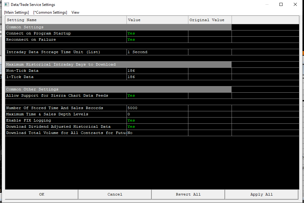 We are not sure what you are trying to tell us at this point. But based on your above statements, here are some things to consider. - Sierra Chart is setup to allow you to connect to your trading service and get the data from us. There, you should keep your system connected to your trading service and if you have the Denali feed setup (which you do), then as long as the option for Global Settings >> Data/Trade Service Settings >> Common Settings >> Allow Support for Sierra Chart Data Feds is set to Yes, then you should be getting the data from our Denali feed. As you note, the [M] symbol means that you are getting the data from us. - The Market Depth data should be the same between two systems that are both getting the data from us. But, in the image you provided, the Intraday Data Storage Time Unit is set to 1 second. This would have to be the same on both systems. Although it would be best to change this to 1 tick on both systems to ensure that you have the data at the finest granularity. For the most reliable, advanced, and zero cost futures order routing, use the Teton service: Sierra Chart Teton Futures Order Routing |