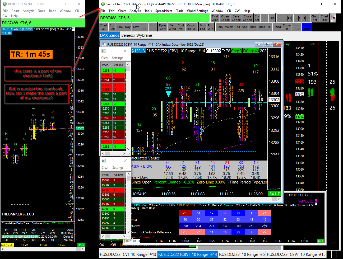 I do not know how can I keep cumulative delta in the current range. I need to search all the time where the cumulative delta is. Is there a way to set the indicator to show the delta at it`s current level, please? Please see the attachment. Secondly I have a chart which is outside my chartbook. It belongs to the chartbook but it is outside as a seperate thing. How can I put the chart back as a part of the chartbookk? Please see attachment. |