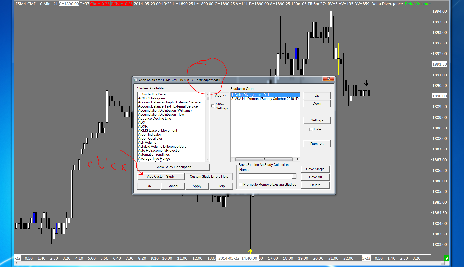 I have a problem, when you click in the Add Custom Study program stops crashes