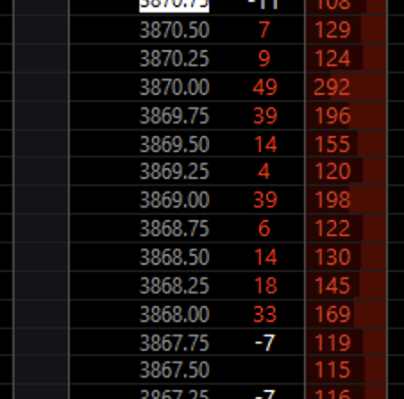 I've attached a screenshot of my DOM chart settings, as well as my DOM and then another DOM with accurate lot sizing at 3870.
