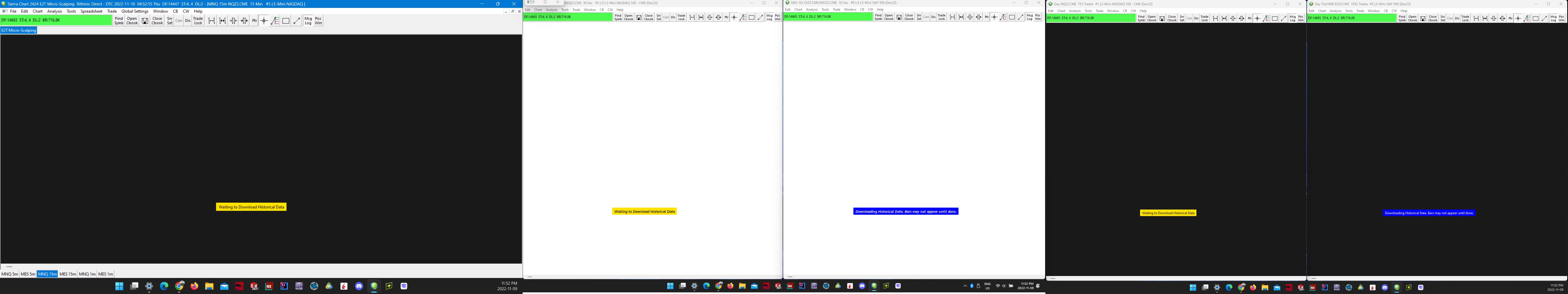 HTTPS connection ID:1 to www.rithmic.com:443 for request ID:1 (4) | Creating socket. Using TLS 1.2. | 2022-11-10 04:46:32.660 HTTPS connection ID:1 to www.rithmic.com:443 for request ID:1 (4) | New receive buffer size: 32768 | 2022-11-10 04:46:32.660 HTTPS connection ID:1 to www.rithmic.com:443 for request ID:1 (4) | Connecting to IP: 38.79.0.89. | 2022-11-10 04:46:32.660 Reading Internal Order ID file. | 2022-11-10 04:46:32.716 Reading Trade Orders file. | 2022-11-10 04:46:32.772 Reading Trade Positions file. | 2022-11-10 04:46:32.772 Reading Trade Account Data files. | 2022-11-10 04:46:32.772 Software version: 2424 64-bit | 2022-11-10 04:46:32.786 Primary Thread ID: 23944 | 2022-11-10 04:46:32.786 Usage end date: 2023-06-15 | 2022-11-10 04:46:32.786 Enabled for: Sierra Chart Historical Data Service. | 2022-11-10 04:46:32.786 Enabled for: Denali Real-Time Exchange Data Feed. | 2022-11-10 04:46:32.786 Enabled for: Delayed Denali Exchange Data Feed. | 2022-11-10 04:46:32.786 Enabled for exchange2: fairx_exchange.data | 2022-11-10 04:46:32.786 Allow Support for Sierra Chart Data Feeds is enabled. | 2022-11-10 04:46:32.786 Current selected Data/Trading service: Rithmic Direct - DTC | 2022-11-10 04:46:32.786 Custom symbol settings values: enabled | 2022-11-10 04:46:32.786 Chart Update Interval: 500 | 2022-11-10 04:46:32.786 Intraday Data Storage Time Unit: 1 | 2022-11-10 04:46:32.786 Time Zone: +00:00:00 (UTC+00) | 2022-11-10 04:46:32.786 2022-11-10 04:46:32 Local computer time in UTC | 2022-11-10 04:46:32.786 2022-11-10 04:46:32 Local computer time in SC Time Zone | 2022-11-10 04:46:32.786 2022-11-10 04:46:32 Server time in UTC | 2022-11-10 04:46:32.786 Local computer UTC time and Server UTC time difference: 0 seconds. | 2022-11-10 04:46:32.786 Program path: C:\SierraChart\ | 2022-11-10 04:46:32.786 Data Files path: C:\SierraChart\Data\ | 2022-11-10 04:46:32.786 OS Version Number: 10.0 | 2022-11-10 04:46:32.786 Locale Setting: C | 2022-11-10 04:46:32.786 DLLs: Trade29CustomStudies_2151_64.dll, UserContributedStudies_64.dll | 2022-11-10 04:46:32.786 Allowed protected custom studies: Trade29 Custom Studies | 2022-11-10 04:46:32.786 Crash reporter started: true | 2022-11-10 04:46:32.786 Checking for new symbol settings. Requested symbol settings MD5 for service code rithmic_v2.trading. Request ID: 1. | 2022-11-10 04:46:32.787 HTTPS connection ID:1 to login.sierrachart.com:443 for request ID:1 (1) | Shutdown started. Waiting for graceful close. | 2022-11-10 04:46:32.811 HTTPS connection ID:1 to login.sierrachart.com:443 for request ID:1 (1) | Socket gracefully closed by remote side. | 2022-11-10 04:46:32.948 HTTPS connection ID:1 to login.sierrachart.com:443 for request ID:1 (1) | Closed. | 2022-11-10 04:46:32.948 HTTPS connection ID:1 to www.rithmic.com:443 for request ID:1 (4) | Socket gracefully closed by remote side. | 2022-11-10 04:46:33.007 HTTPS connection ID:1 to www.rithmic.com:443 for request ID:1 (4) | CloseSocket call. | 2022-11-10 04:46:33.007 HTTPS connection ID:1 to www.rithmic.com:443 for request ID:1 (4) | Graceful close received or receive error. Shutdown complete. Closing socket now. | 2022-11-10 04:46:33.007 HTTPS connection ID:1 to www.rithmic.com:443 for request ID:1 (4) | Closed. | 2022-11-10 04:46:33.008 Received 5 login tokens. | 2022-11-10 04:46:33.265 Symbol settings MD5 received. Request ID: 1. | 2022-11-10 04:46:34.461 Symbol settings are up-to-date for rithmic_v2.trading. | 2022-11-10 04:46:34.461 Files to Open on Startup | File does not exist: C:\SierraChart\Data\ExampleChartbook.cht | 2022-11-10 04:46:37.469 Rithmic Direct - DTC | Using server connection: Rithmic Paper Trading-Chicago Area-Non-Aggregated | 2022-11-10 04:46:39.465 Rithmic Direct - DTC | Connecting to the server rsc.rithmic.com. Port 50500 | 2022-11-10 04:46:39.468 DTC Client socket (1) | Creating socket. Using TLS 1.2. | 2022-11-10 04:46:39.468 DTC Client socket (1) | New receive buffer size: 5242880 | 2022-11-10 04:46:39.469 DTC Client socket (1) | Connecting to IP: 216.57.156.163. | 2022-11-10 04:46:39.469 Rithmic Direct - DTC | Network connection to server complete. | 2022-11-10 04:46:39.571 Rithmic Direct - DTC | Starting socket receive thread. | 2022-11-10 04:46:39.571 Rithmic Direct - DTC | Setting DTC encoding to Binary | 2022-11-10 04:46:39.571 Rithmic Direct - DTC | Sending logon request message. | 2022-11-10 04:46:39.571 Rithmic Direct - DTC | Received logon response. | 2022-11-10 04:46:39.725 Rithmic Direct - DTC | Server Name: . | 2022-11-10 04:46:39.725 Rithmic Direct - DTC | Server protocol version: 8. Client protocol version: 8 | 2022-11-10 04:46:39.725 Rithmic Direct - DTC | Successfully connected. | 2022-11-10 04:46:39.725 Rithmic Direct - DTC | Trading is supported. | 2022-11-10 04:46:39.725 Rithmic Direct - DTC | Order cancel and replace is supported. | 2022-11-10 04:46:39.725 Rithmic Direct - DTC | OCO Orders supported. | 2022-11-10 04:46:39.725 Rithmic Direct - DTC | Symbol and Exchange Delimiter: . | 2022-11-10 04:46:39.725 Rithmic Direct - DTC | Connected to server complete. | 2022-11-10 04:46:39.725 Triggering next historical data download in queue. | 2022-11-10 04:46:39.725 Triggering next historical data download in queue. | 2022-11-10 04:46:39.725 Triggering next historical data download in queue. | 2022-11-10 04:46:39.725 Triggering next historical data download in queue. | 2022-11-10 04:46:39.725 Notice: Not connected to Live trading account to receive CME realtime futures data at non-professional fees. | 2022-11-10 04:46:39.732 No download requests in the queue to start downloads for. | 2022-11-10 04:46:39.732 No download requests in the queue to start downloads for. | 2022-11-10 04:46:39.732 No download requests in the queue to start downloads for. | 2022-11-10 04:46:39.732 No download requests in the queue to start downloads for. | 2022-11-10 04:46:39.732 ESZ2.CME 1 Min #1 | Reloading chart. | 2022-11-10 04:47:04.041 ESZ2.CME 1 Min #1 | Currently no data in file to 
