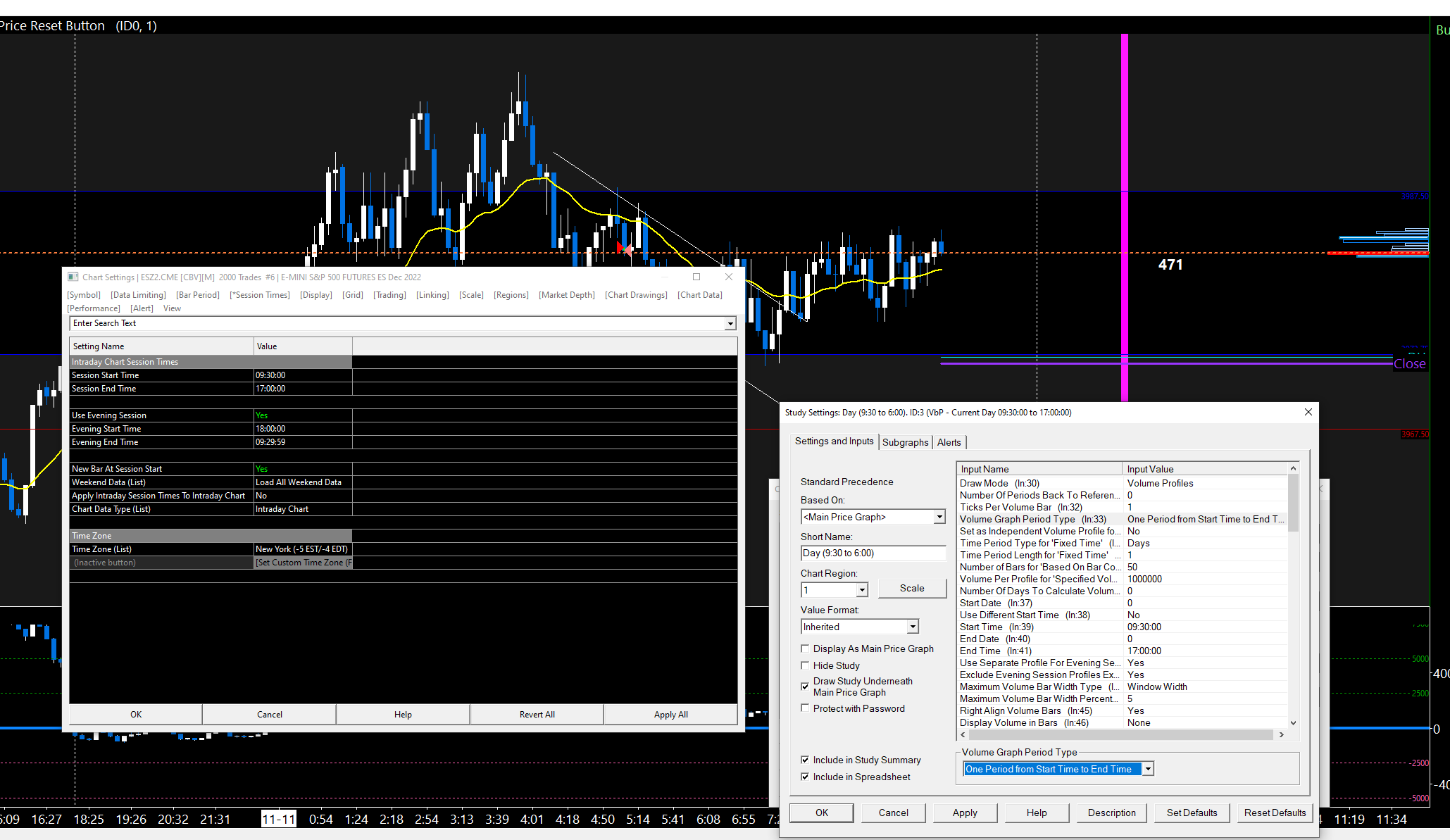I have noticed an error in volume by price study that If I want to plot day session profile tan after midnight it starts plotting the last bar profile until the day session starts (9:30). it should only start printing when the day session start. I have tried alot with different settings, but it is the same. I have attached picture of my session timings, study setting and in which you can see the profile of the last the bar is being print. In picture 1 & 2, from 12:00 AM to before 9:30 AM volume of each bar is printing (which is wrong) In picture # 3, it can be seen that after 9:30 AM the profile started working alright. Can you fix this or am I messing with the settings? |