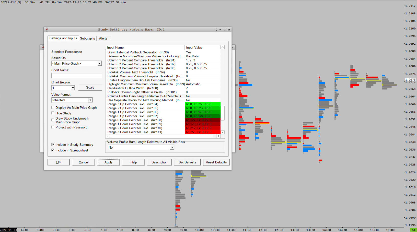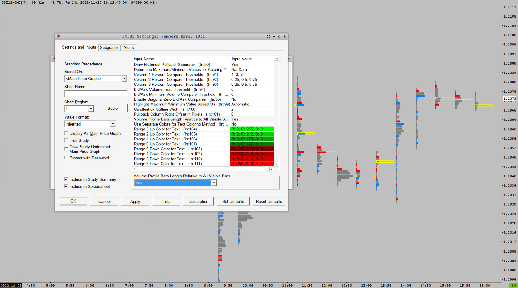 Hi TicinoTrader! When the "Volume Profile Bars Length Relative to All Visible Bars" option is set to 'Yes', I disable highlighting the POC in the "Numbers Bars" study itself and instead use another study "Volume Point of Control for Bars" to stike-out the POC with a thin line. May be you will find this idea useful and more ergonomic. Otherwise when I use a text version of the same chart I switch-on the option "Highlight POC in ..." to draw it as a rectangle at a specific column of "Numbers Bars". BTW, thanx for your YouTube channel and other professional stuff! I am your big fan! Date Time Of Last Edit: 2022-11-27 14:25:35