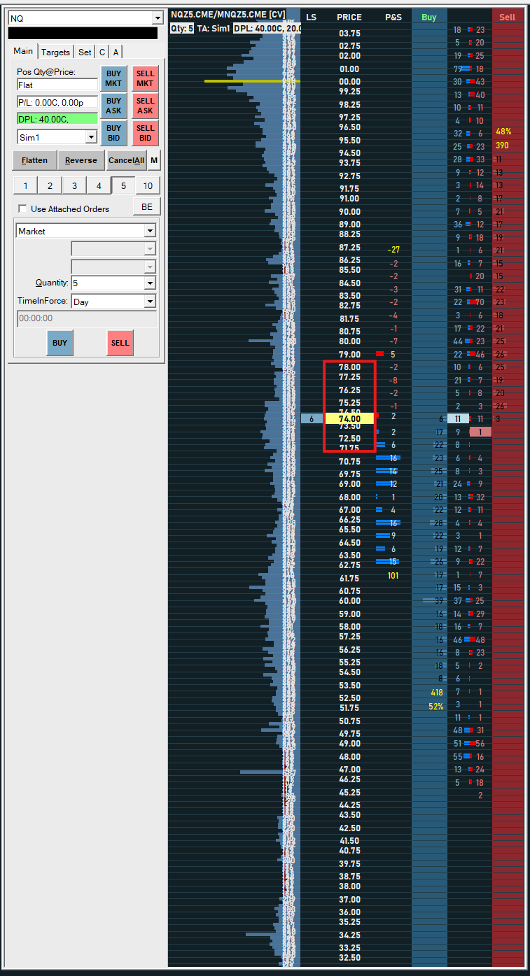 Hi John, The Chartbook you sent has a Trading DOM for NQ, but the Tick Size is the standard 0.25 and the Combine Increment in Ticks is 1