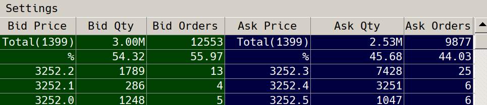 Yes, I just had it limited on that screenshot to 100 levels. However, when I do full market depth, it is the same result as the previous screenshot, all columns compressed nicely.