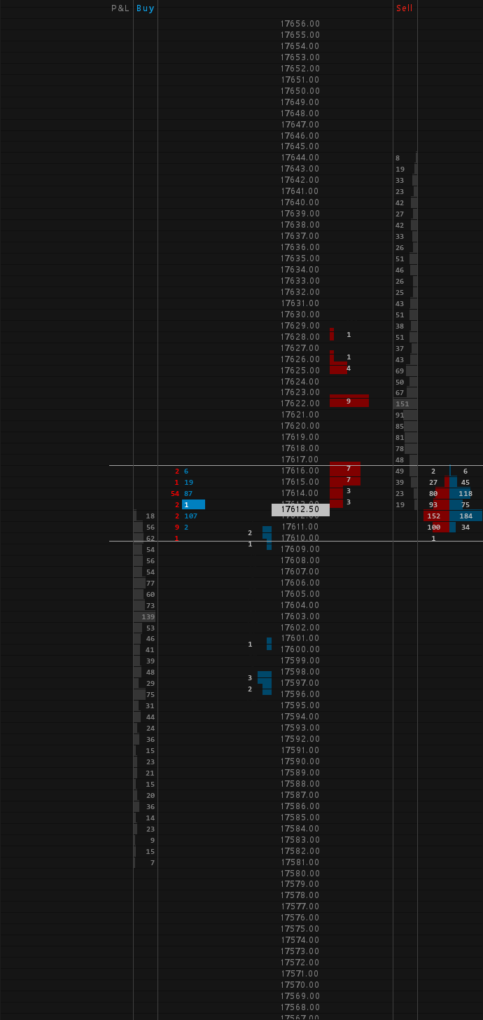 Hi John, Thanks for the reply, that was my main question. To ensure if it wasn't added yet/I wasn't doing something incorrect. Good to know. I think the tick reset as it is 1.0 on my chart. However, it does compress all columns in replay on my end. Please see the screenshot. You will see pull/stack & the current trades both compressed. Hence why I had to ask if I was doing something wrong to not have it in live data. As it is really great in replay having this - myself & a bunch of other traders are just itching to be able to use it with live data. https://www.sierrachart.com/image.php?Image=170732362930.png Appreciated! |