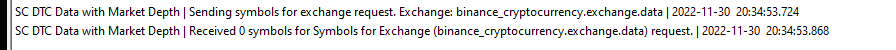 That is a good question. We were wondering about that. It probably has something to do with the non-streaming security definition data that was giving a faulty response or no response from Binance. We should cache that data so in case there is a problem with that data we can still continue without it. Sierra Chart Support - Engineering Level Your definitive source for support. Other responses are from users. Try to keep your questions brief and to the point. Be aware of support policy: https://www.sierrachart.com/index.php?l=PostingInformation.php#GeneralInformation For the most reliable, advanced, and zero cost futures order routing, use the Teton service: Sierra Chart Teton Futures Order Routing |