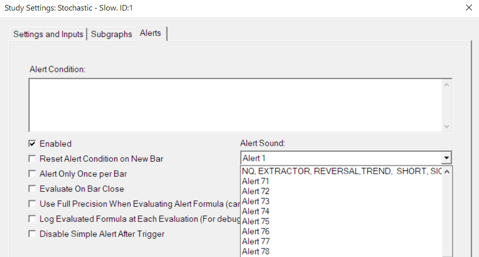 The sound file is not what is shown when selecting an alert. It is the "User Defined Name". You must have set the "User Defined Name" to a particular alert to be "NQ, EXTRACTOR, REVERSAL, TREND, SHORT...". Refer to the following: General Settings Window: User Defined Name (Global Settings >> General Settings >> Alerts >> User Defined Name) For the most reliable, advanced, and zero cost futures order routing, use the Teton service: Sierra Chart Teton Futures Order Routing |