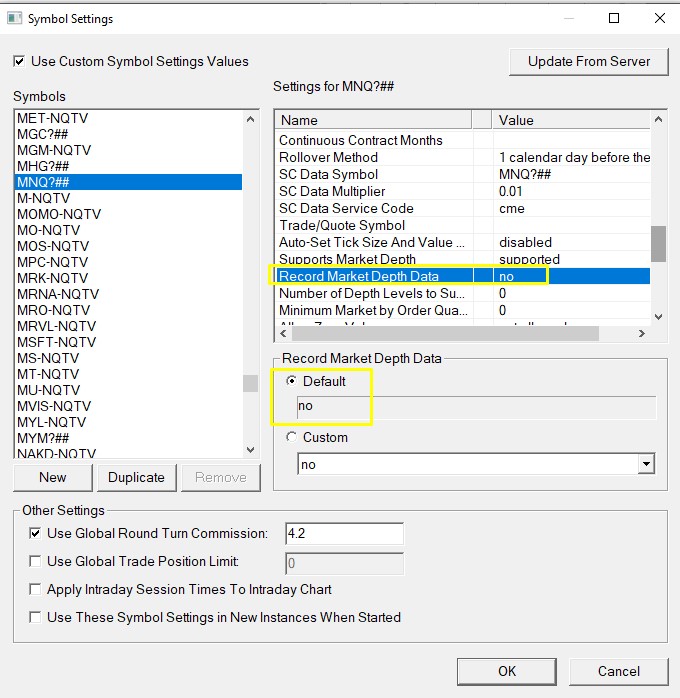 You would also need to make sure you do not have the option for Global Settings >> Symbol Settings >> Use These Symbol Settings in New Instances when Started enabled in the Main Instance of Sierra Chart. If you change this, you will want to exit all Sub-Instances and start again to ensure that the symbol settings are not being overwritten. Also, you have to ensure you do not have the Market Depth Historical Graph on any of the charts in the Sub-Instance, as having this study on a chart will force the saving of the Market Depth as well. For the most reliable, advanced, and zero cost futures order routing, use the Teton service: Sierra Chart Teton Futures Order Routing |