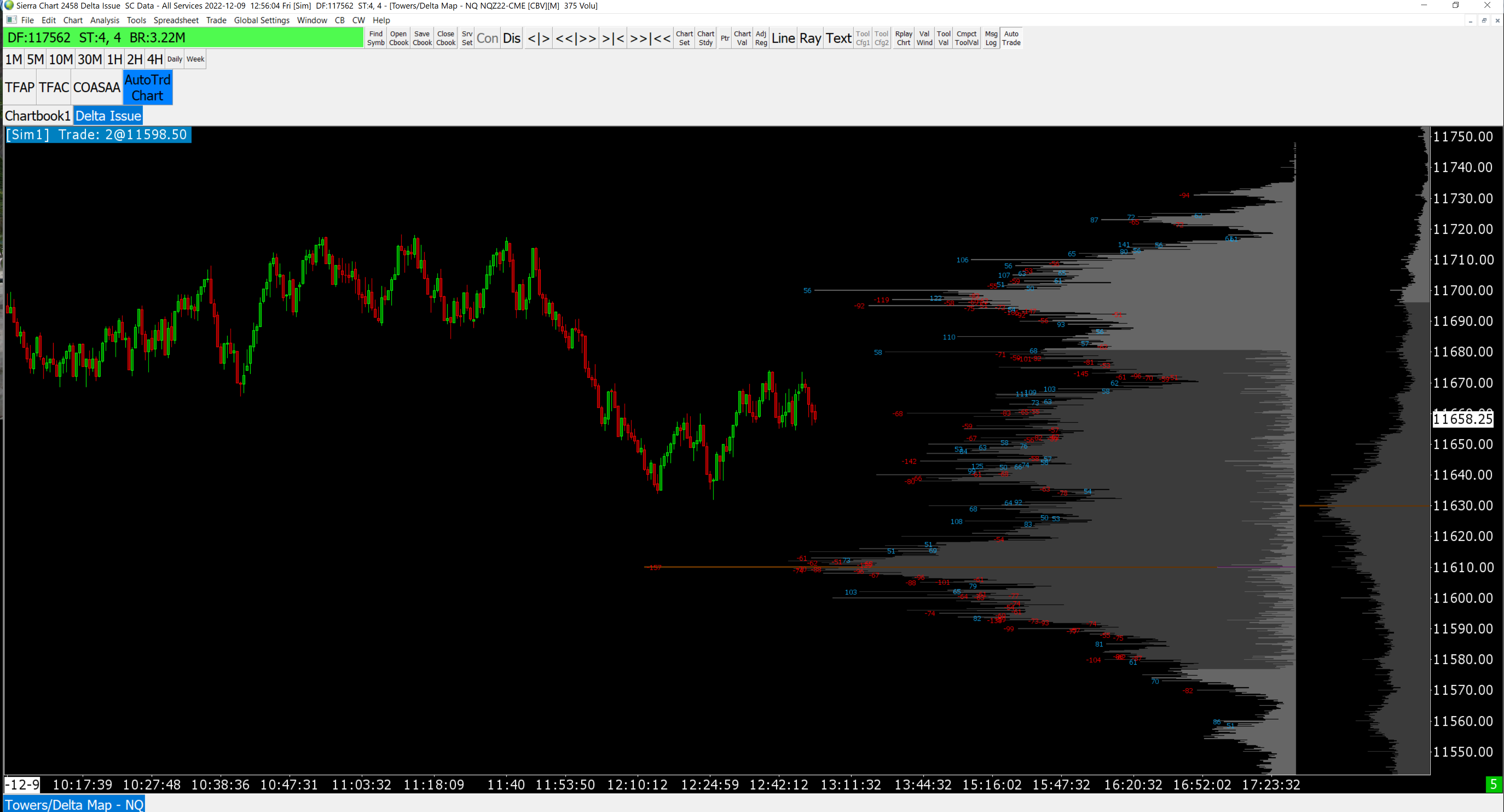 My apologies, I left them on just because of the conversation we'd been having. I have reuploaded the chart without them. It is the correct chart though because if you look on at the Volume profile on the left you can see the delta bars smaller in it. If you expand the scale of the chart you can see where the delta bars on the left volume profile are red/blue outside of the value area and green inside of it. Again, please let me know if you need anything else from me and thank you again for the quick responses and help.