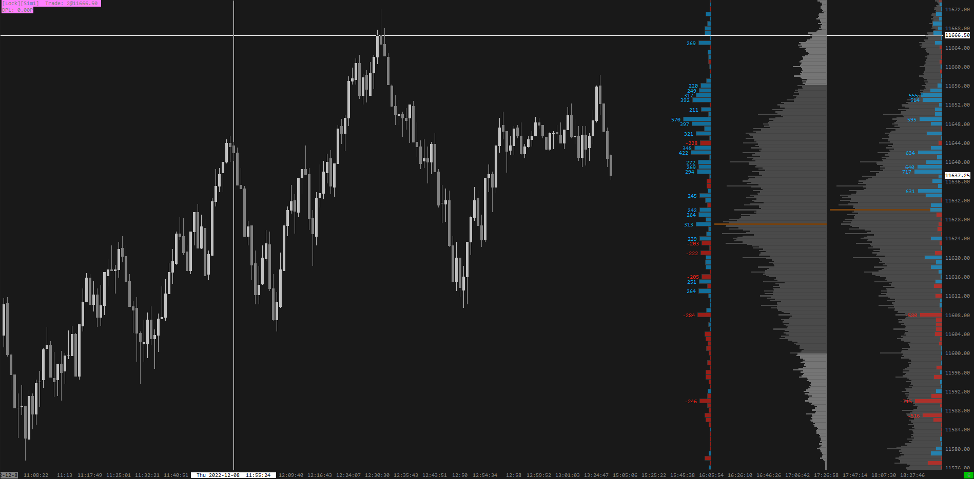 https://www.sierrachart.com/image.php?Image=1670537397638.png I'm trying to have two separate volume profiles on a chart, one for the week and a second for the current day, with a delta by price profile for the time period overlapped on each one. I want the week ones to be on the right with the day ones next it on the left. I can figure out how to get the delta profile for the week to overlap the volume profile for the week on the right, but I can't seem to figure out how to get the delta/volume profiles for the day to overlap each other on the left. Is there a way to get the delta and volume profiles on the left to overlap each other while being separate from the weekly stuff on the right? I apologize if this is covered somewhere in the instructions. I've tried going through them before opening this support request and cannot figure out how to do it. Thank you for the help. |