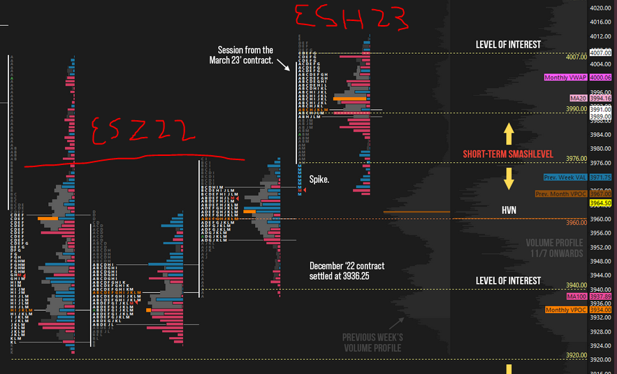 Hello, I am trying to get my TPO chart to mimic the one that is attached and having issues doing so. I would like my TPO chart to have this past Friday, 12/9/2022 show the new ESH23 contract but the rest of my TPO to show the ESZ22 contracts. Currently, if I select Continuous Futures Contract, Volume or Date Based Rollover, Friday's TPO and the rest stay at ESZ22; however, if I select Volume or Date Based Rollover, Back Adjusted, it shows the TPO with ESH23. Again, I am just trying to get this past Friday to show ESH23. Anyway to do so?