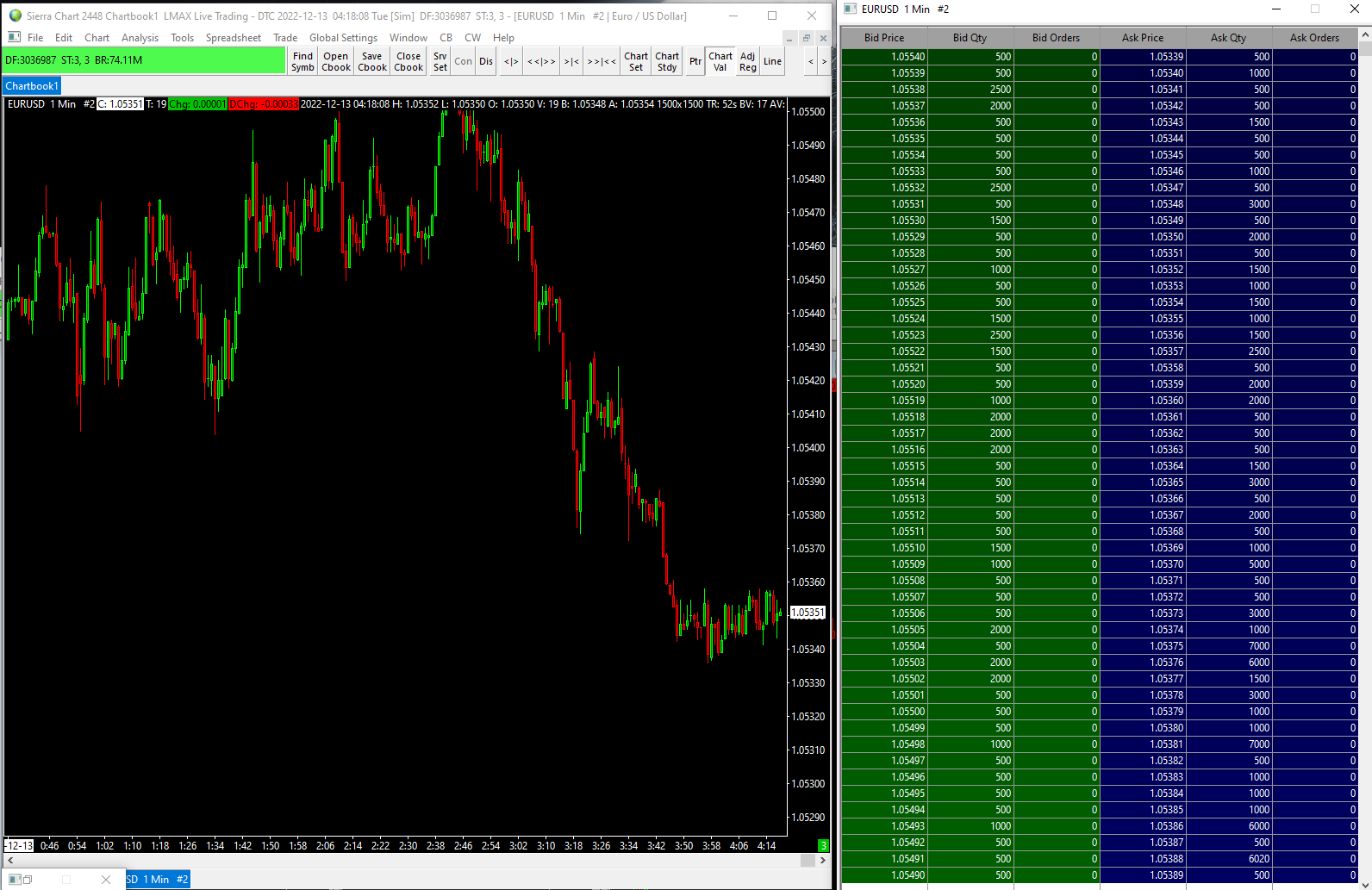 This is going to take some time to troubleshoot. We do observe this. Troubleshooting market depth data issues is very involved and difficult. Something must have changed on the LMAX side causing this. This has not occurred before. Sierra Chart Support - Engineering Level Your definitive source for support. Other responses are from users. Try to keep your questions brief and to the point. Be aware of support policy: https://www.sierrachart.com/index.php?l=PostingInformation.php#GeneralInformation For the most reliable, advanced, and zero cost futures order routing, use the Teton service: Sierra Chart Teton Futures Order Routing Date Time Of Last Edit: 2022-12-14 05:27:53