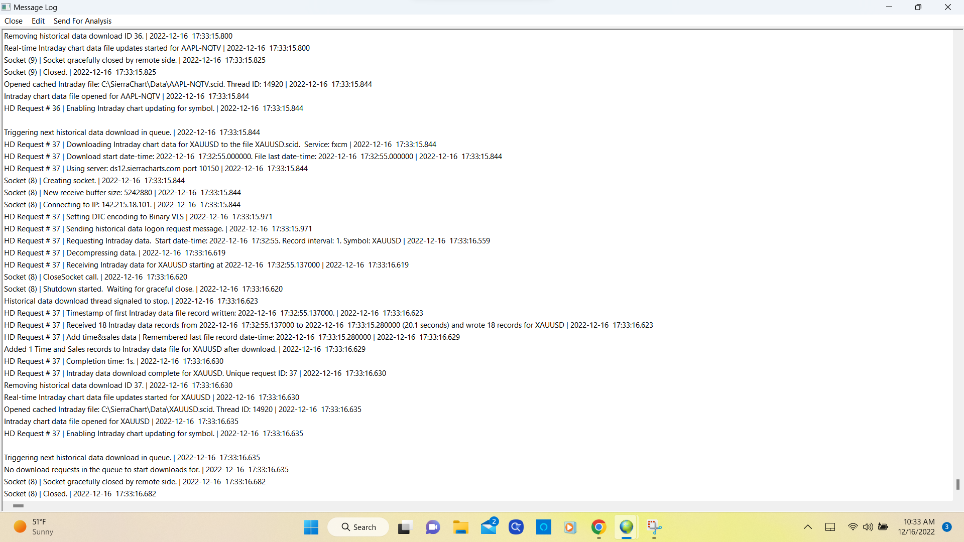 Please give us a screenshot of what you are seeing. And also go through the following instructions to get us your Message Log: Follow the instructions here to clear the Message Log: Message Log: Clearing the Message Log Open a chart for the symbol you have an issue with. Tell us that symbol of the chart. Disconnect from the data feed with "File >> Disconnect". Connect to the data feed with "File >> Connect to Data Feed". After the connection and after about 10 seconds, provide a copy of the Message Log following these instructions: Support Board Posting Information: How to Post Your Message Log (Required In Some Cases) We will then determine what the problem is. For the most reliable, advanced, and zero cost futures order routing, use the Teton service: Sierra Chart Teton Futures Order Routing |