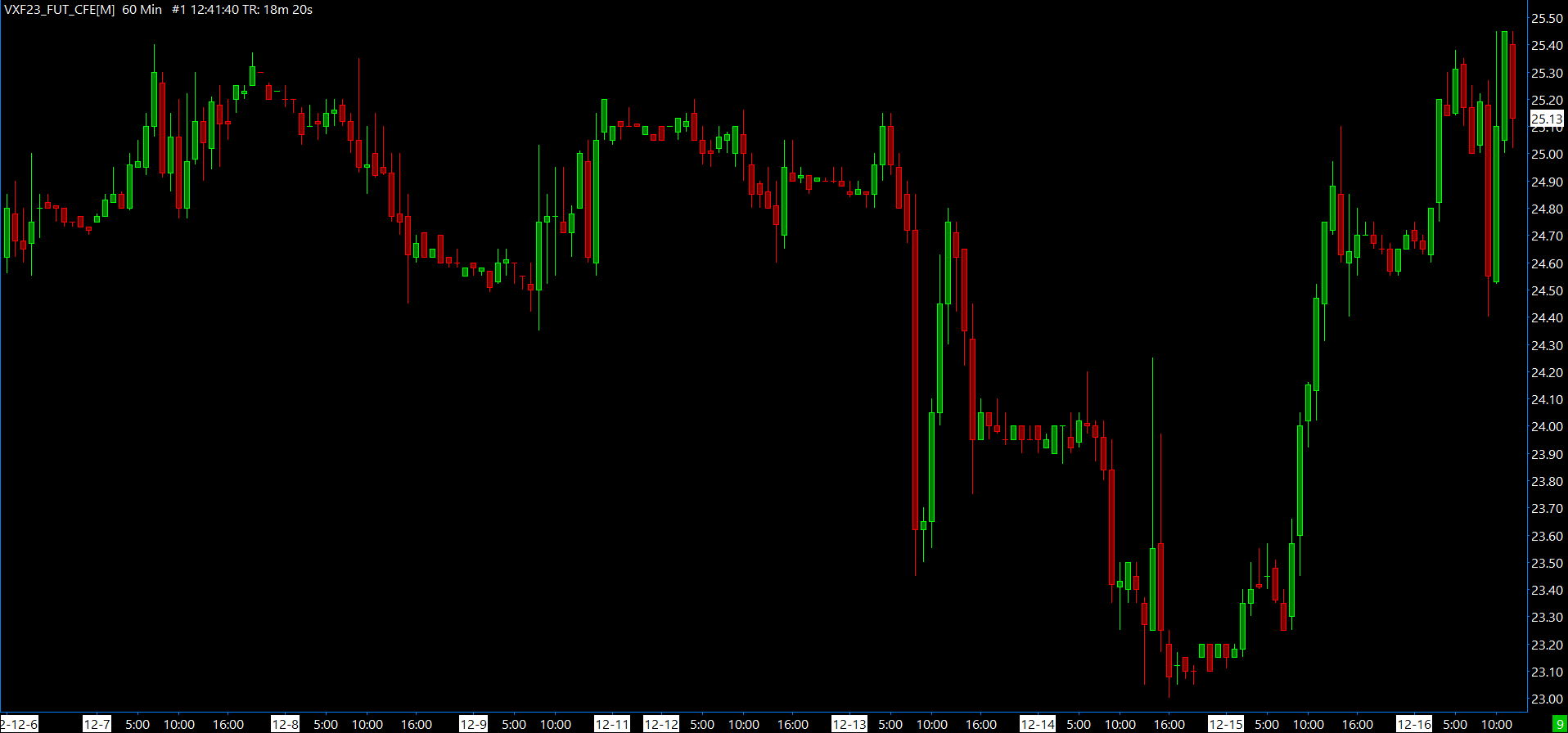 Based upon what we see you are getting data for this symbol: HD Request # 29 | Received 26 Intraday data records from 2022-12-16 11:25:04.083000 to 2022-12-16 11:25:21.447000 (17.4 seconds) and wrote 11 records for VXF23_FUT_CFE | 2022-12-16 11:25:25.437