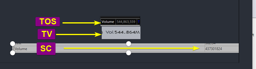 Hello, I have recently subscribed to the real-time market data to get stock data in SC. Looking through the data, I have noticed SPY weekly data is potentially incorrect. It does not match volume data from TOS (544.86m) or Tradingview (544.86m). As such, it did not trigger a volume alert I have set. Please see attached image for volume data comparisons. Thank you. Date Time Of Last Edit: 2022-12-17 22:05:33