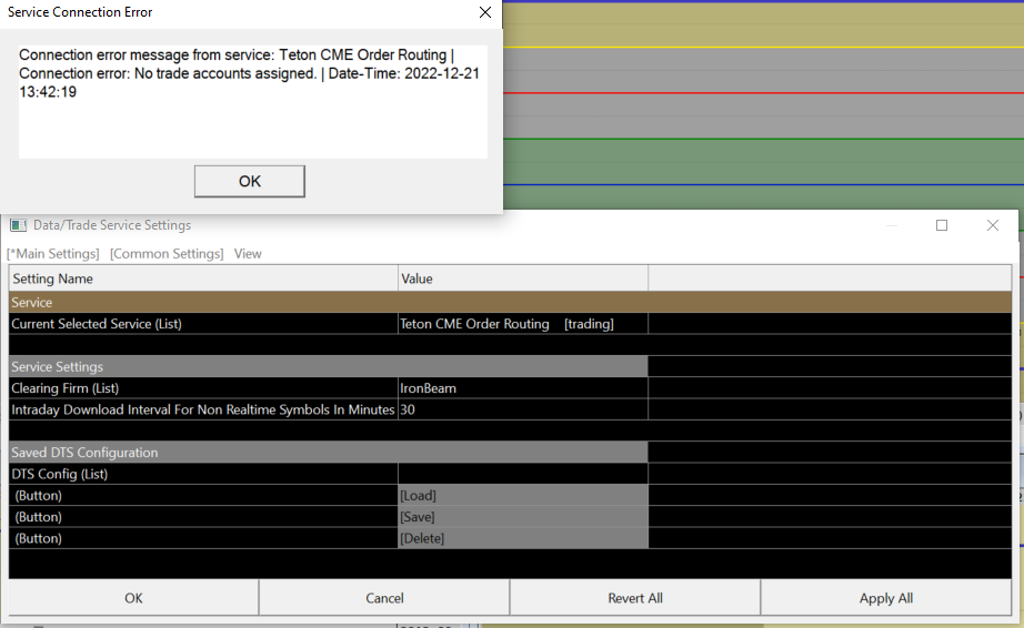 The problem is, we need to see the entire Message Log in this format: Support Board Posting Information: How to Post Your Message Log (Required In Some Cases) Sierra Chart Support - Engineering Level Your definitive source for support. Other responses are from users. Try to keep your questions brief and to the point. Be aware of support policy: https://www.sierrachart.com/index.php?l=PostingInformation.php#GeneralInformation For the most reliable, advanced, and zero cost futures order routing, use the Teton service: Sierra Chart Teton Futures Order Routing |