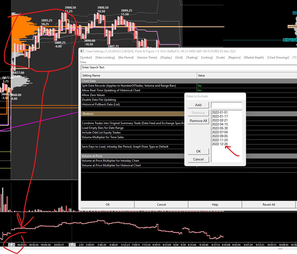 Refer to the information for that setting at the following link: Chart Settings: Set Dates To Exclude (Button) (Chart >> Chart Settings >> Chart Data >> Chart Data menu) For the most reliable, advanced, and zero cost futures order routing, use the Teton service: Sierra Chart Teton Futures Order Routing |