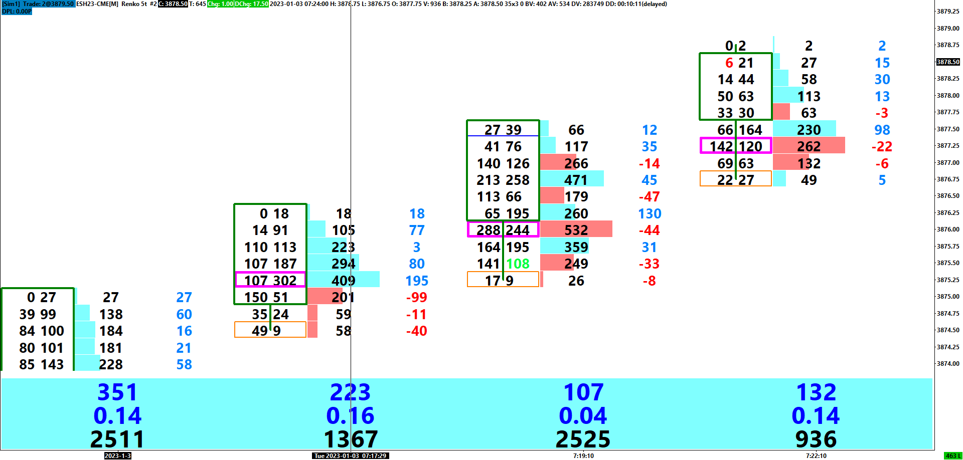 Hi John, Sierra Chart Happy New Year to you all at Sierra Chart. Question:- My trading style is shirt-term scalper and I was wondering is there is a way to overlay (or combine) my current 5 tick Renko footprint chart with my DOM? Essentially what I am asking is that can I see my evolving 5 tick Renko bars moving up/down with the DOM for the same price levels? Rather than having my footprint and DOM as two separate studies alongside each other. If not, I would be more than happy to see the total Bid Volume/Ask Volume traded on the Dom for each successive 5 tick Renko bar? Many thanks. Kind Regards Stephen |