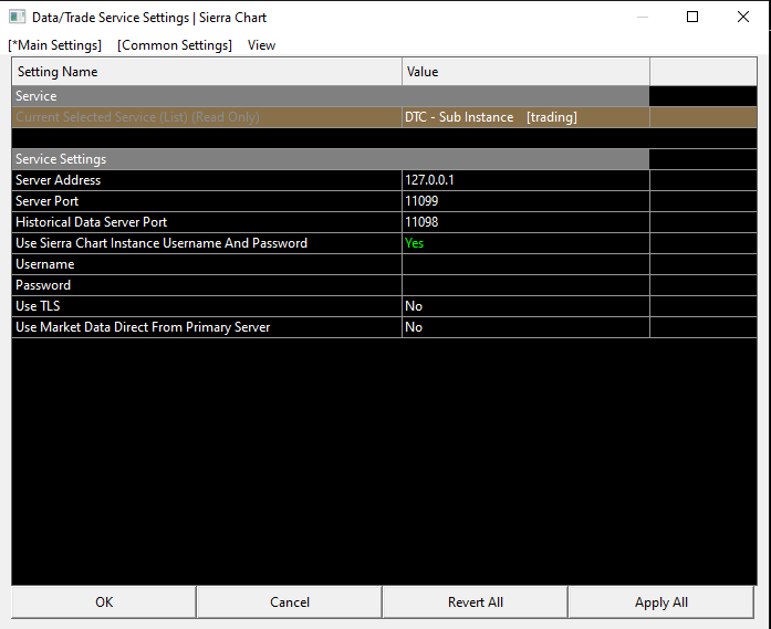 I did not know I wasn't supposed to see the [M] in the sub instance. I did "Edit >> Delete All Data and Download" and the missing data was loaded. However, I do not see my Apex accounts in the DOM trade window in the main instance. In the Data/Trade Service Settings window, I entered my Apex login information under Rithmic Direct - DTC [trading] selection for Current Selected Service. I then changed the Current Selected Service to SC Data - All Services [Data]. Is this what I should be doing? Or should I leave Current Selected Service as Rithmic Direct - DTC [trading]? |