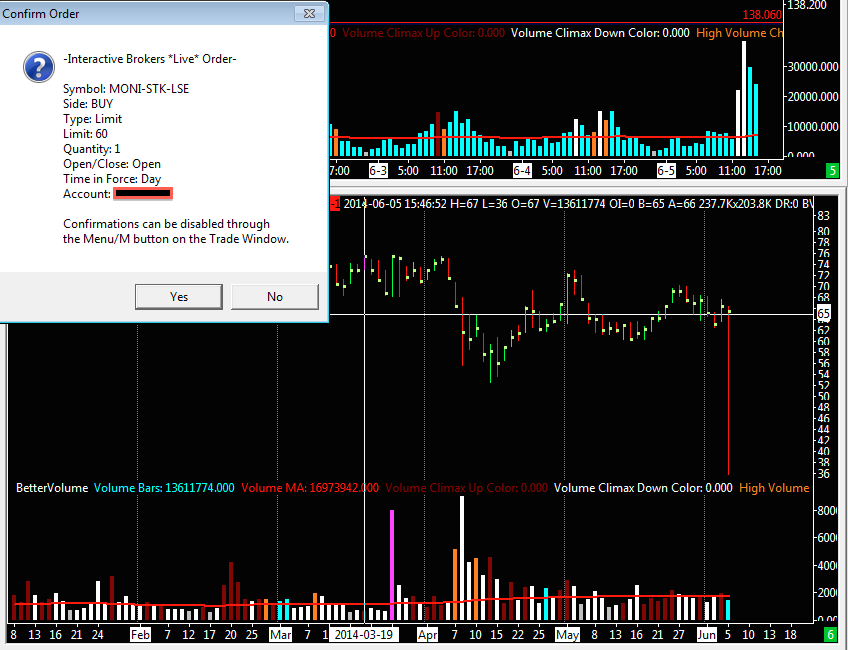 Hello Support, There seems to be a problem attaching orders to charts using IB as the trading provider. I attach a limit order of say 48.00 to the chart, but when the confirmation comes up, it says 50? Are there any changes I need to make in TWS? Thanks |