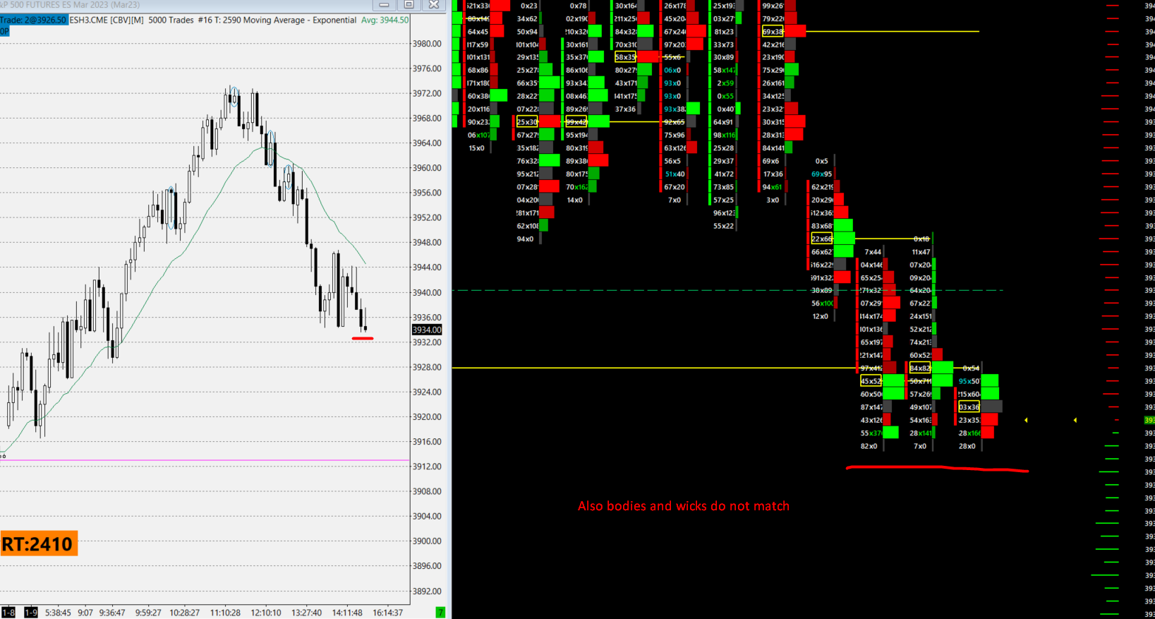 Hello, I tried to find out why my # trades bar do not match on candle and foot print candle. Check times, symbols, market times, new bar at start are all the same, but charts different, right from get go. I use 00:00:00 and 23:59:59 new york time and start bar is slightly off and gets worse. Any ideas to look for?