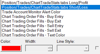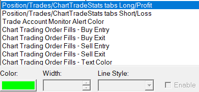 Have not changed these settings, Position/Trades/ChartTradeStats tabs Long/Profit set to Green, and Short/Loss set to Red.