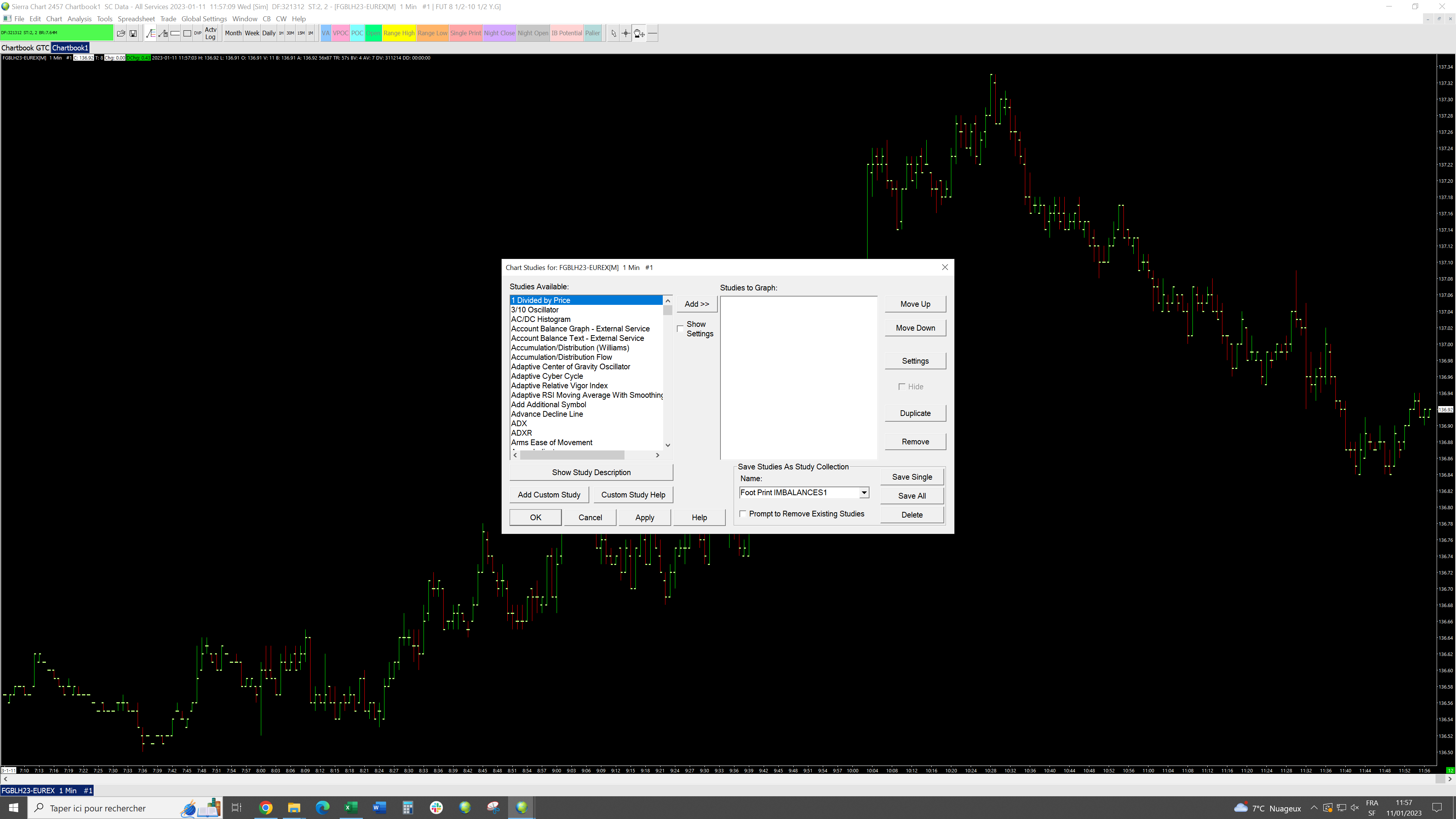 The image you provided is how you save a Study Collection, but it is not how you apply a Study Collection to a chart. To apply a Study Collection to a chart select the Analysis menu and you will see the Study Collection name in that menu towards the bottom. Select the name of the Study Collection you want to apply and it will then be applied. Refer to the information here: Study Collections: Applying a Study Collection to a Chart For the most reliable, advanced, and zero cost futures order routing, use the Teton service: Sierra Chart Teton Futures Order Routing |