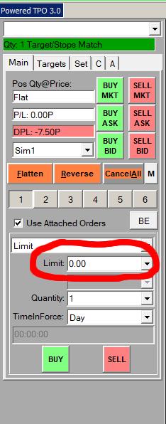 Being that I am placing my orders by clicking on the Trading DOM, does it matter if the Limit box is set to 0.00, being that I am not using it to place my orders?
