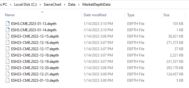 Thank you for replying. OK now i have some data loaded but nothing for the last several days. In the market depth data folder now the files are for ESH3.CME instead of ESH3-CME which seems that it was a problem but I'm not sure why it doesn't load the data for all the days leading up to the current/last day. It seems there are 2 days of missing data (1/12 and 1/13) |