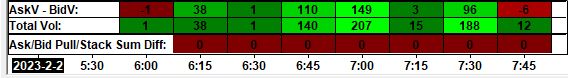 Hello, I am using "Number Bars Calculated Values 2" study. When chart is reloaded, historical data for Sum Bid pull/stack (SG7), Sum Ask pull/stack (SG8) and Ask/Bid pull/stack Sum Diff (SG9) is lost. You lose all data previous to chart reload. Can you fix this? Can you make it so when chart is reloaded for any reason such as changing time frame or updating a chart study, pull/stack data is kept instead of simply showing zeros? Thanks Miguel |