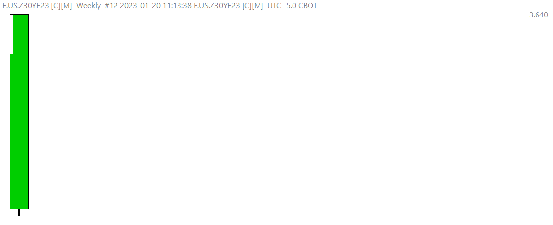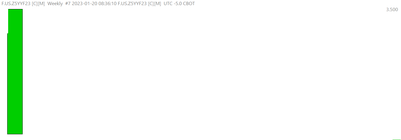 What is wrong with this chart?: https://www.sierrachart.com/image.php?Image=1674253295536.png Before taking our time first contact the exchange and do not ask us. It is their data. There is nothing wrong with it. And we would not use weekly with these micro yield symbols, these are relatively new contracts, and there is not much history. This is an example what we see for a continuous daily chart contract chart: https://www.sierrachart.com/image.php?Image=1674442543753.png However, this is what we see for weekly: https://www.sierrachart.com/image.php?Image=167444258315.png Sierra Chart Support - Engineering Level Your definitive source for support. Other responses are from users. Try to keep your questions brief and to the point. Be aware of support policy: https://www.sierrachart.com/index.php?l=PostingInformation.php#GeneralInformation For the most reliable, advanced, and zero cost futures order routing, use the Teton service: Sierra Chart Teton Futures Order Routing Date Time Of Last Edit: 2023-01-23 02:57:52